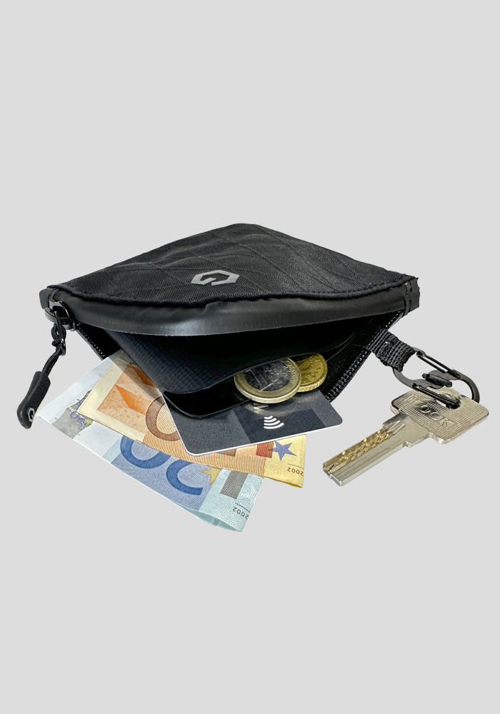 This compact wallet is made from USA X-pac 100% water-proof fabric. This compact wallet is designed to hold what you need, while keeping your pockets light, trim and tailored.